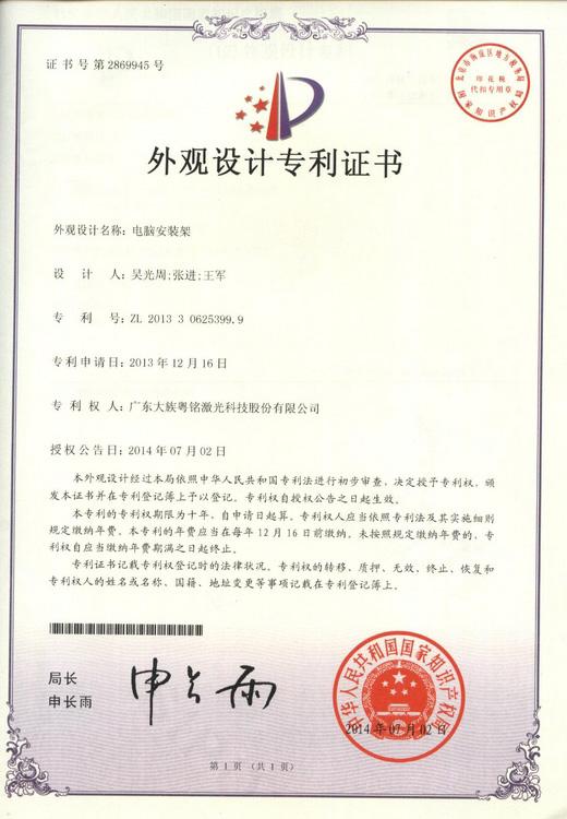 1. GD Han's Yueming Laser Group obteve com sucesso 149 patentes de invenção e patentes de modelo de utilidade. Estas conquistas provam que os nossos produtos são inovadores, eficientes e de alto grau. O nosso sistema de produto cobre oito indústrias principais e sete séries de quase 80 setores principais de categorias dos produtos. O nosso equipamento a laser fornece soluções para mais de 30 aplicações industriais.